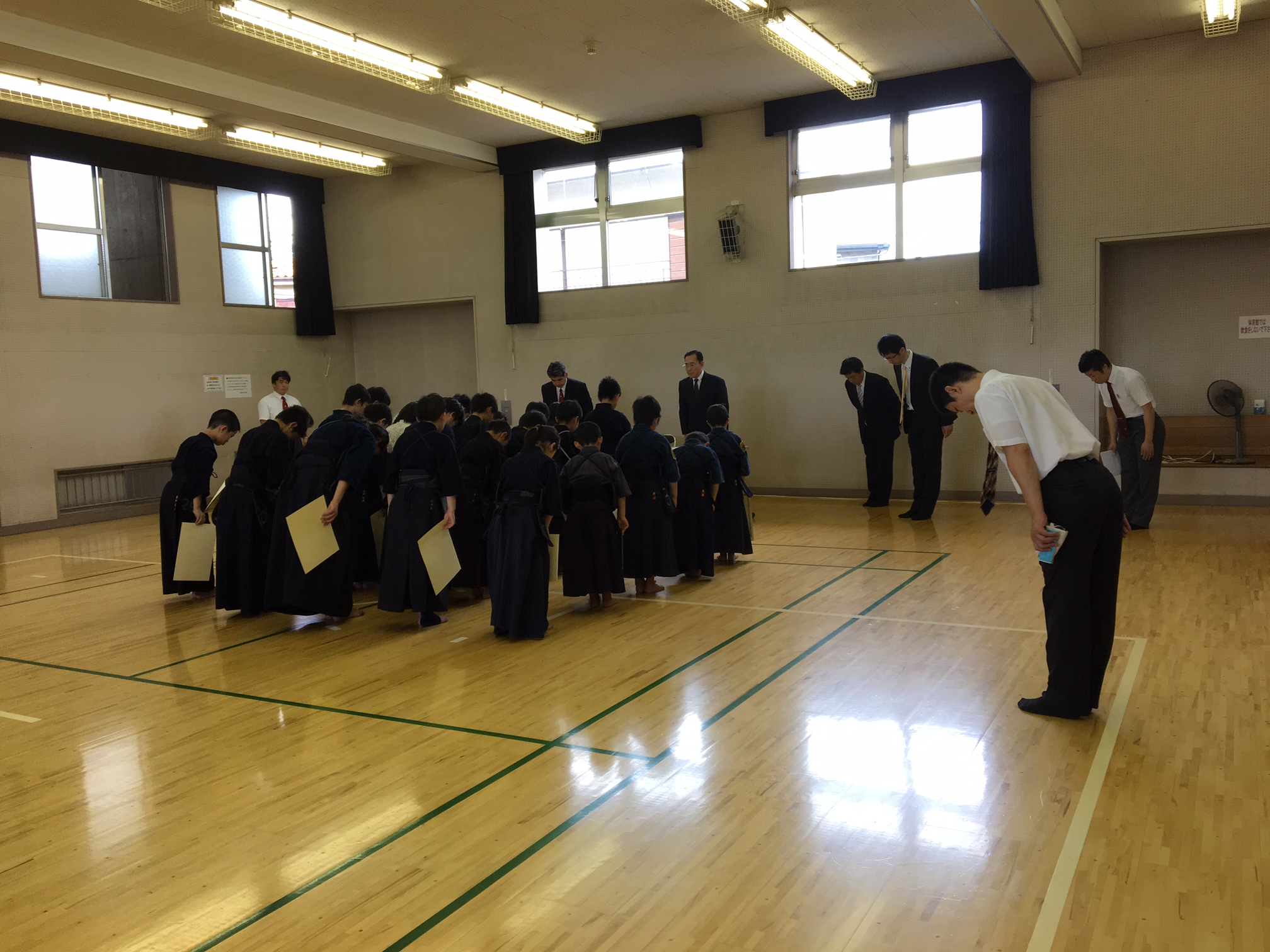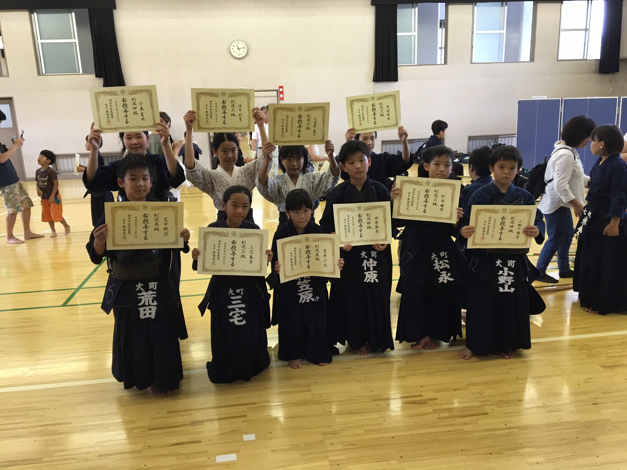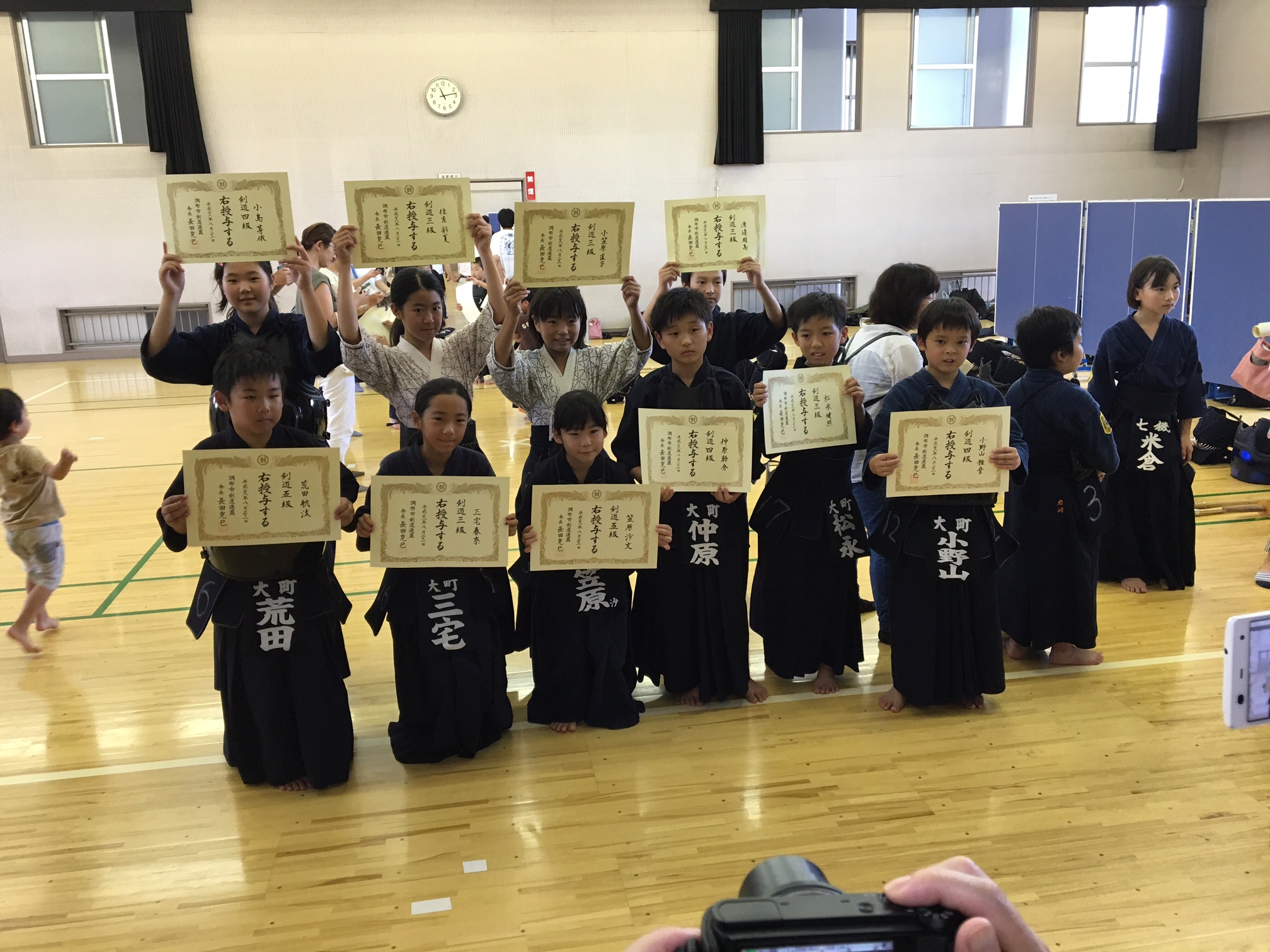 本日の級審査会の結果! Posted on2016年8月21日AuthoroomachiaraiLeave a comment 本日、西調布体育館で開催され、大町から11名が受審し、全員が申請級に見事、合格しました! これまでの数ヶ月、数年に亘る稽古の成果が形になって表れたものと思います。 次の級、段に向けて、また気持ちを新たにして、これからも稽古に励んでください。 その前に開催される、近藤勇杯や調布市大会などの試合での活躍も期待しています! 合格者のみなさん、保護者のみなさん、本当におめでとうございました。<(_ _)>